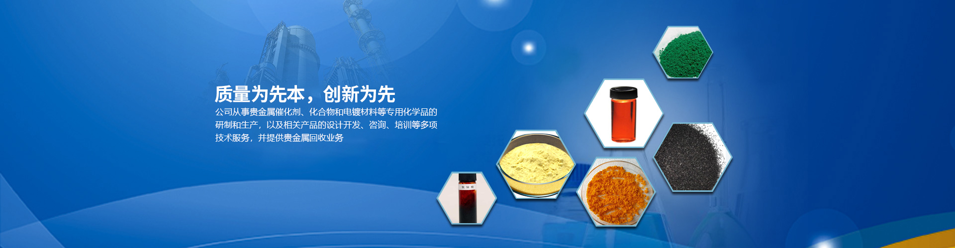 目前公司的主要產品有:醋酸鈀、氯化鈀、硝酸鈀、硫酸鈀、氯鉑酸、反-二(三苯基膦)二氯化鈀、四(三苯基膦)鈀、乙酰丙酮鈀;三氯化銠、辛酸銠、碘化銠、硝酸銠、醋酸銠、三苯基膦氯化銠、三苯基膦乙酰丙酮羰基銠、三苯基膦氯化銠、乙酰丙酮二羰基銠等,廣泛應用于藥物合成、石油化工、精細化工和電鍍領域。本公司對所有產品進行嚴格檢測從定量和定性方面嚴把質量關,并通過ISO90001質量體系認證。